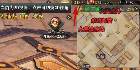 江山英雄是一款3D国战网游,玩家可以在进入游戏世界初始调整我们的游戏视角,进行更加酷炫的3D游戏体验,当然了对于不适应3D的玩家还可以将游戏调为2D。