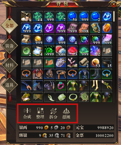 游戏里为玩家准备了非常丰富的道具,玩家们可以自由进行购买,出售,甚至不想要的可以丢弃,熔炼。玩家需要学会点击右键使用物品,不仅使用道具还可以穿戴装备,也可以点击拆分按钮对道具进行拆分,甚至宝石之类的道具还可以进行合成。